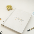 Характеристики:• Тип: альбом із самоклеючими аркушами• Кількість сторінок: 80 сторінок / 40 двосторонніх аркушів• Розмір альбому: A4 (28 × 32 см)• Робоче поле сторінки: 20.5 × 31 см• Матеріал обкладинки: оксамит (колір айворі)• Колір сторінок: білі з золотим краєм